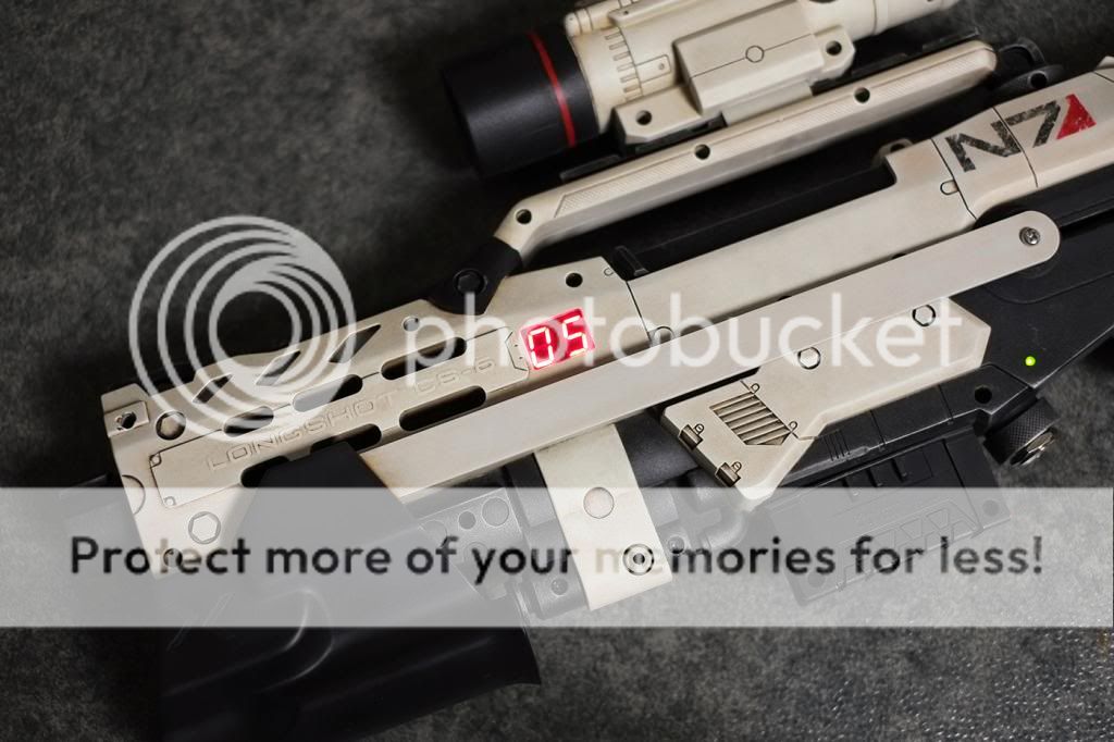 nach langer Zeit habe ich endlich auch meine LS mal fertig bekommen. Nebst der Lackierung und einigen internen Modifikationen habe ich einen Blasterparts Alien-Ammo-Counter komplett zerlegt und in die Longshot integriert.